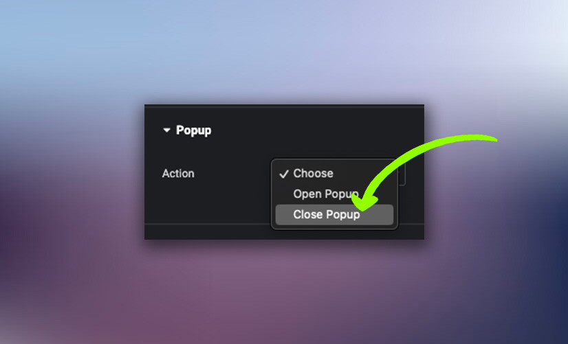 After selecting “Popup,” you’ll notice that the “Popup” options appear in the sidebar under “Actions After Submit.” Within the Popup “Action,” simply choose “Close Popup.”