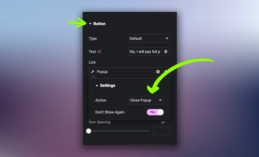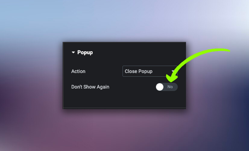 Step 4: Once you’ve selected the “Close Popup” action, a toggle switch labeled “Don’t Show Again” will appear.